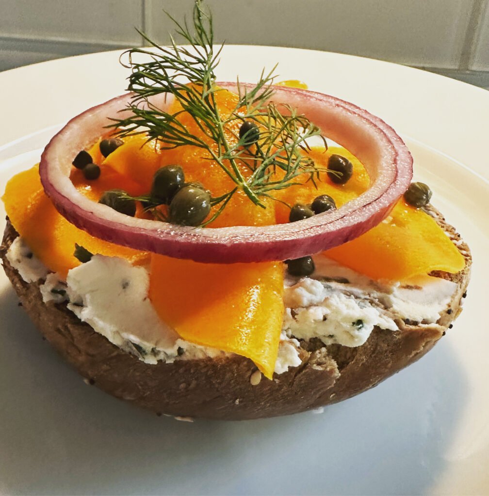 Most bagel shops will have tofu schmears (spreads) in various flavors – usually, at least scallion and veggie are available aside from plain – often sweet ones such as strawberry as well. Many bagel shops have many more and I highly recommend you check them out. Among my favorites are Tompkins Square Bagels (probably has the largest selection of vegan schmears), Zuckers bagels (try the Konscius foods salmon, which is a veganized version of a classic bagels & lox), Ess A Bagel or Baz bagels (beet horseradish is my favorite there). While the bagel carts on the streets are cute, they usually have no vegan options aside from a “naked” bagel and black coffee, so I recommend scoping out an actual bagel shop.